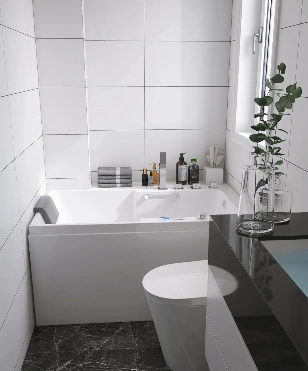 選擇直角靠墻的浴缸,浴缸最好在1.2米以下,自然也就節(jié)省了空間。因?yàn)樾≡「左w積較小,更要選擇雙層保溫和承重能力強(qiáng)的浴缸,才會(huì)讓沐浴時(shí)光不掉檔。
