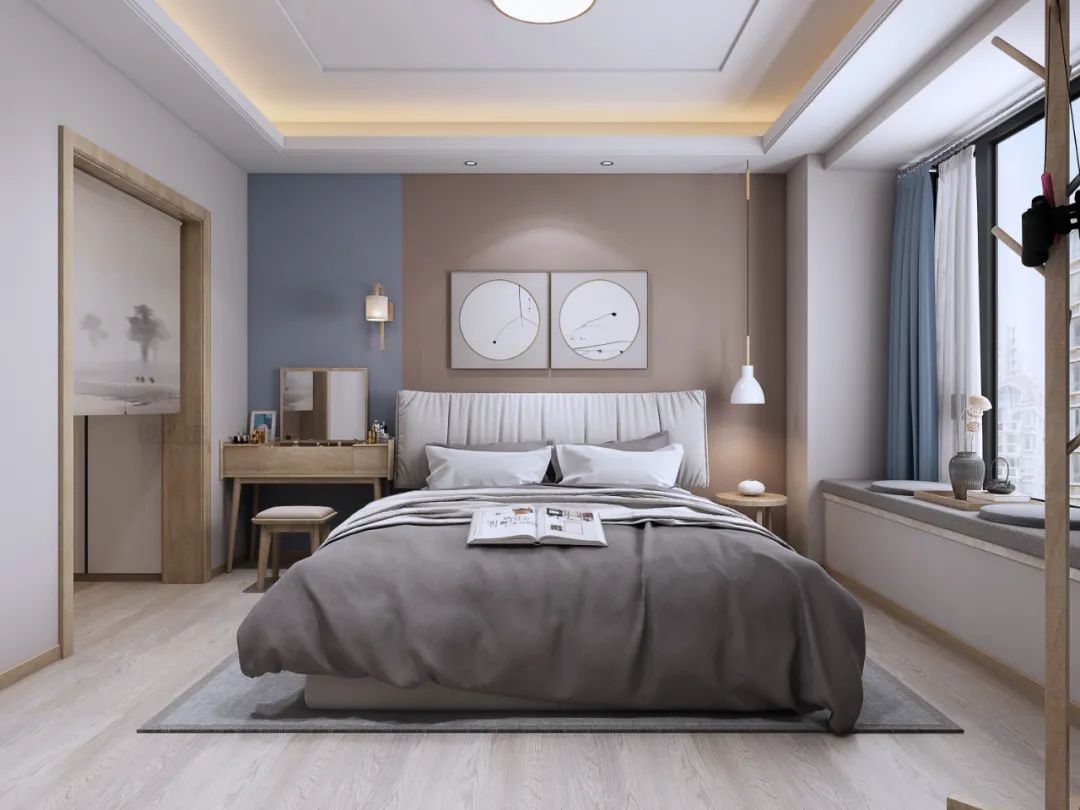 臥室里如果有放書桌、梳妝臺(tái)等家具的話,也可以把書桌/梳妝臺(tái)的臺(tái)面靠著飄窗布置,這樣可以借著飄窗的空間加寬臺(tái)面的面積,這樣在用書桌/梳妝臺(tái)的時(shí)候,就可以擁有更加寬敞的臺(tái)面空間了。