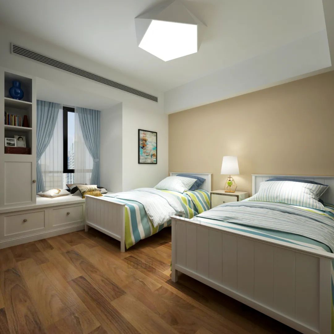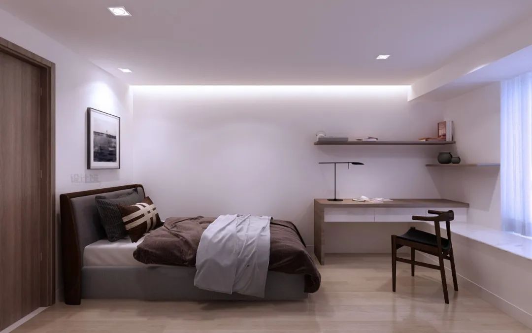 像臥室里有飄窗的話,可以采取定制床的設(shè)計(jì),把床挨著飄窗定制,然后在飄窗上加一層的板材,讓床與窗臺(tái)做成一樣高,這樣飄窗也可以成為床鋪的一部分。這樣的設(shè)計(jì),對(duì)于小面積的臥室而言是非常實(shí)用的方案。