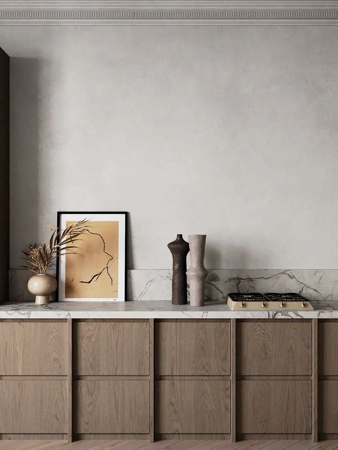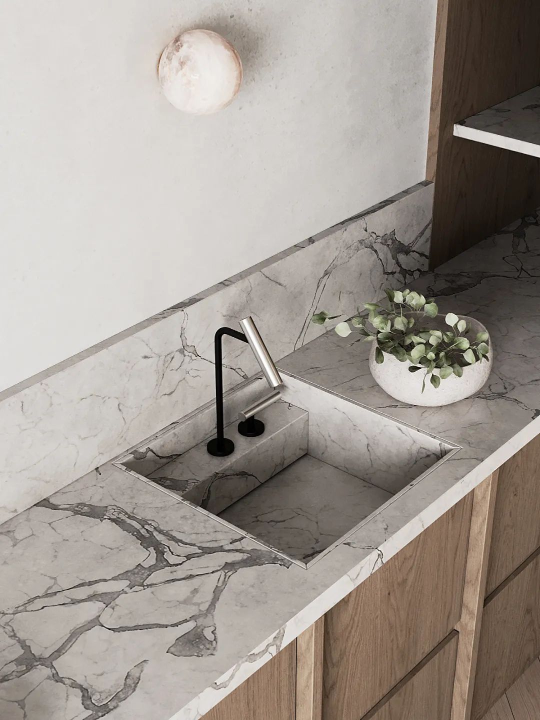 廚房的烹飪區(qū),按照【洗——切——炒】動線來規(guī)劃就不會出錯,再者除了中規(guī)中矩的吊柜+地柜收納之外,有多余空間的話還可以在廚房側(cè)面做收納柜,滿足廚房豐富的儲物需求。
