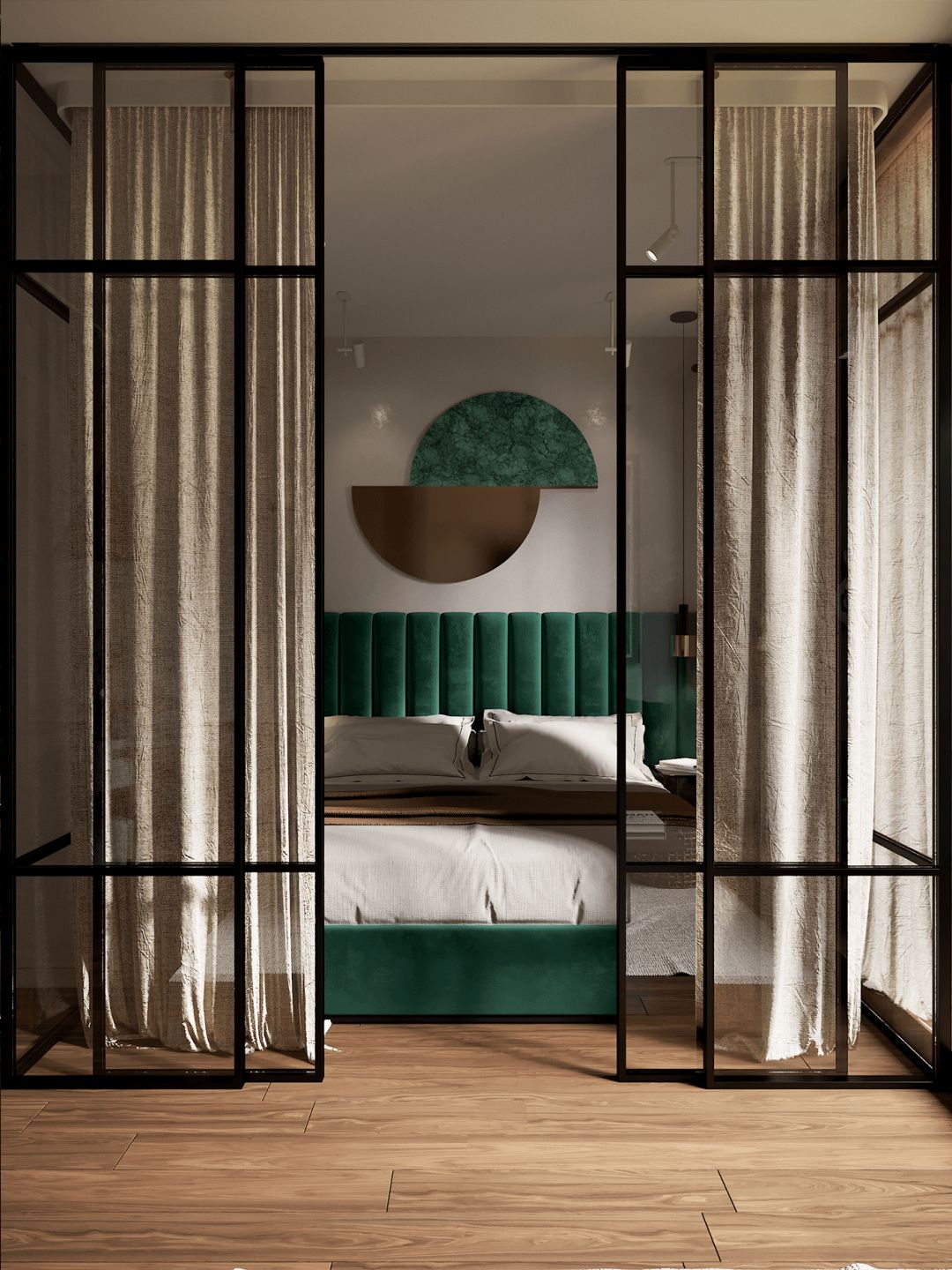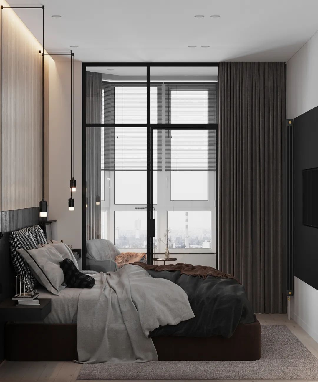 玻璃隔斷能節(jié)省不少空間、且能為臥室提供更多的采光,對于沒窗戶的小臥室十分友好。