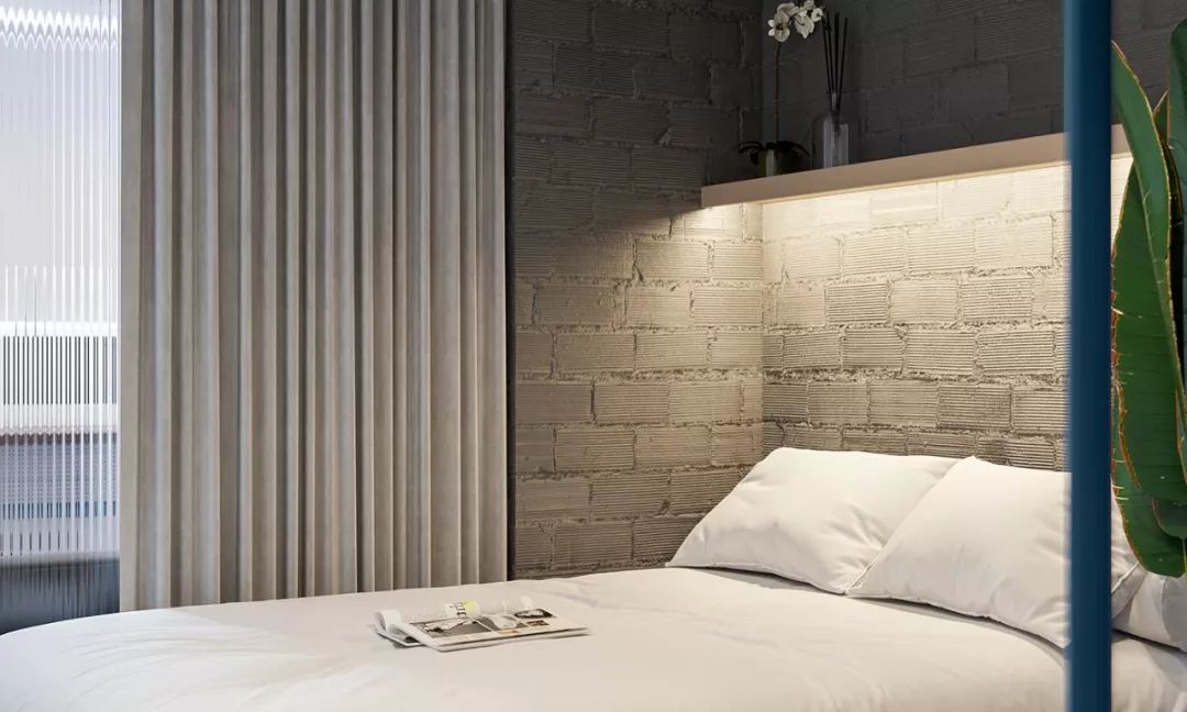 且因為家里人不多,玻璃隔斷隔音不好的缺點對小戶型來說影響并不大,晚上睡覺時,只要拉起簾子,臥室也是一個獨立的空間。