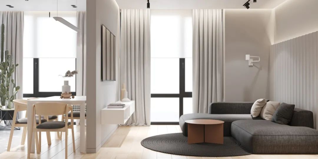 除了以上說的幾點,小戶型要顯大,簡約的設(shè)計與用色上也十分講究。
