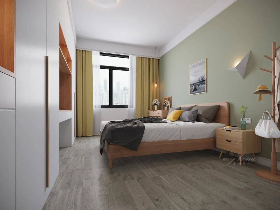 綠色是森系的顏色,能給人以清新與生機(jī)的氣息感,用淺綠色來(lái)做臥室的墻面,搭配上相對(duì)自然舒適的家具,可以使得臥室充滿生機(jī)勃勃的舒適與愜意氛圍。