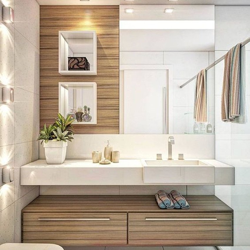 有些戶型的下水管是在洗漱臺(tái)旁邊的,導(dǎo)致看著面積挺大,其實(shí)真正能用到的地方卻很小,但如果我們?cè)谘b洗漱臺(tái)時(shí),延長(zhǎng)其臺(tái)面到下水管處將其包起來,一方面既起到了隱藏的作用,同時(shí)臺(tái)面上也能置放物品,想想是不是一舉兩得?