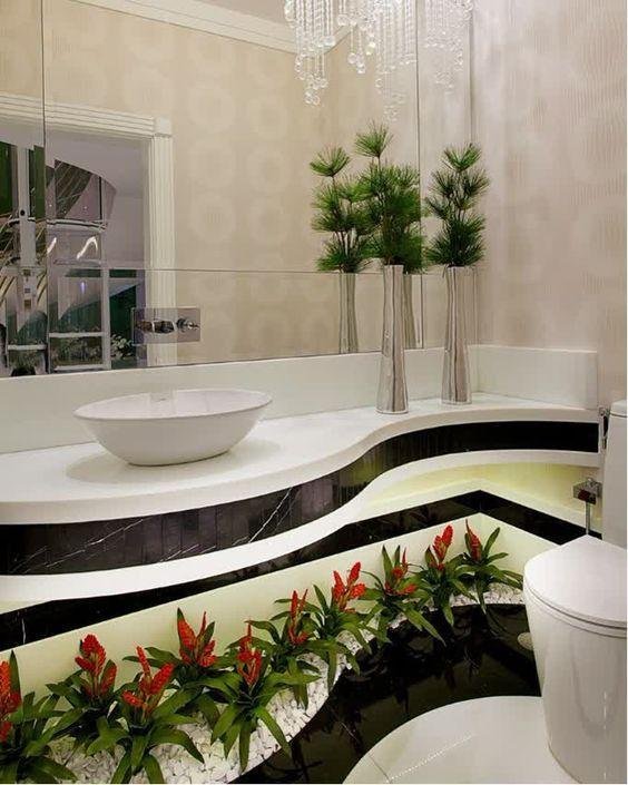 當(dāng)然除了這些方方正正的洗漱臺(tái)面之外,像下面這些弧形臺(tái)面也是可以的,蜿蜒的曲線擺些花花草草,照樣能滿足需求,而且設(shè)計(jì)感十足,瞬間多個(gè)迷你花園!