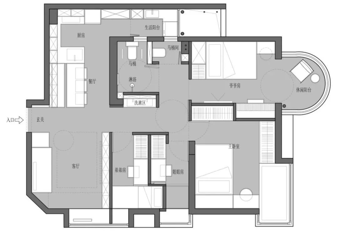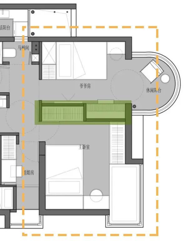 家里有老人就不要做什么下沉玄關(guān),臺地陽臺和臺地榻榻米臥室了,這一點很重要。