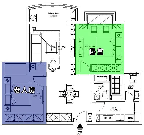 最好把帶衛(wèi)生間的主臥給老人使用, 也可以像這樣↓單獨(dú)設(shè)計一個馬桶間給老人實用。