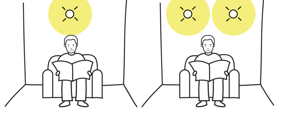和兒童不同的是,老人房的燈光要足夠明亮。 因為視力的退化,感官標(biāo)準(zhǔn)值需要提高到成年人的1.5倍。