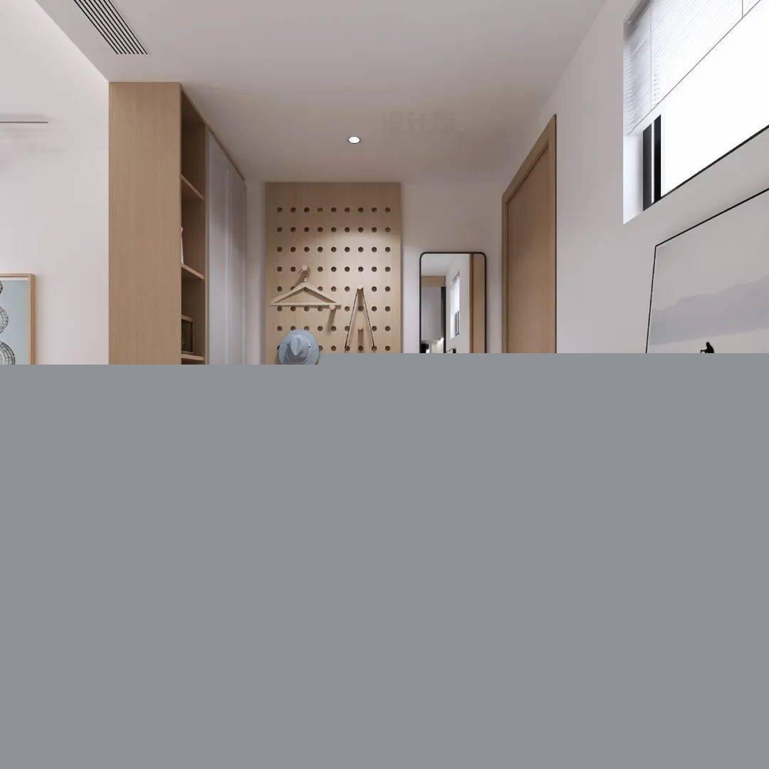 沿著長(zhǎng)墻裝鞋柜,大門(mén)與大廳之間的動(dòng)線流程無(wú)阻,更適合家有小孩的情況。