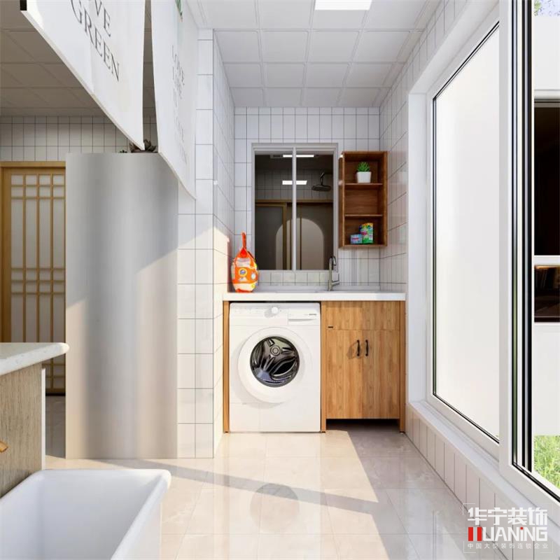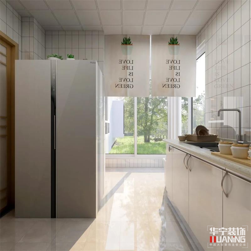 生活陽臺通透的玻璃材質將外部采光很好地引入室內,在視覺上緩解過度飽和的壓抑感,讓不大的廚房空間溫馨感十足。