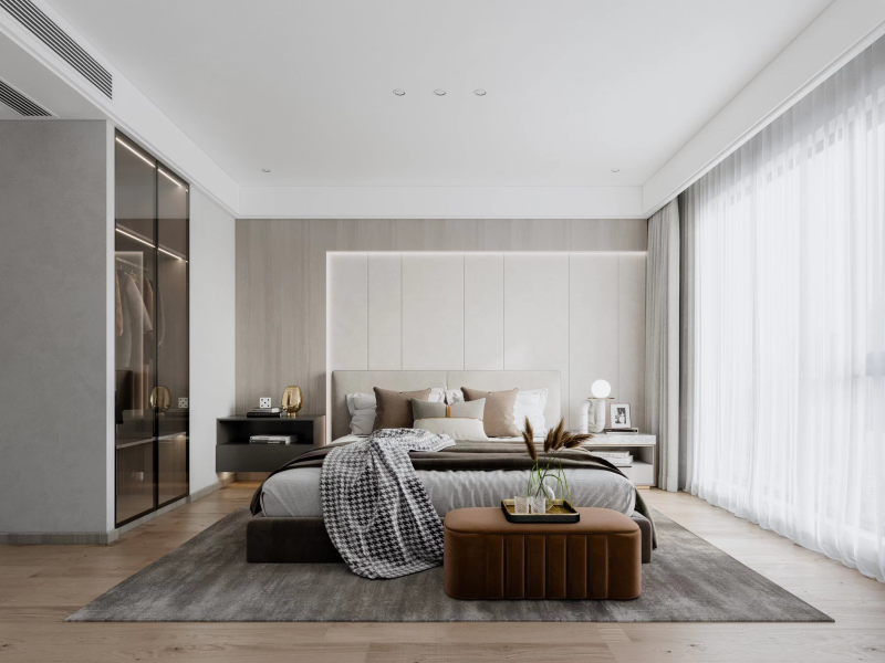 家具與床應(yīng)至少相距70厘米,便于走動。另外,家具陳設(shè)應(yīng)盡量簡潔、實(shí)用。