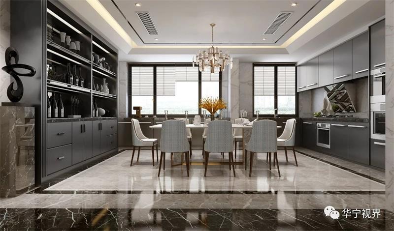 開放式廚房在打通客廳與餐廳的區(qū)域后,空出的區(qū)域就可以用來做一個中島臺。島臺柜體可結(jié)合設(shè)計紅酒架、收納柜等,增加更多儲物空間;臺面可用于備餐和就餐,集廚房和餐廳功能于一體,提高空間利用率。另外,這里還可以是一個家居版下午茶餐廳,周末的午后,一杯茶、一份簡餐,在這里處理緊急的工作需求也能讓人心生愉悅。