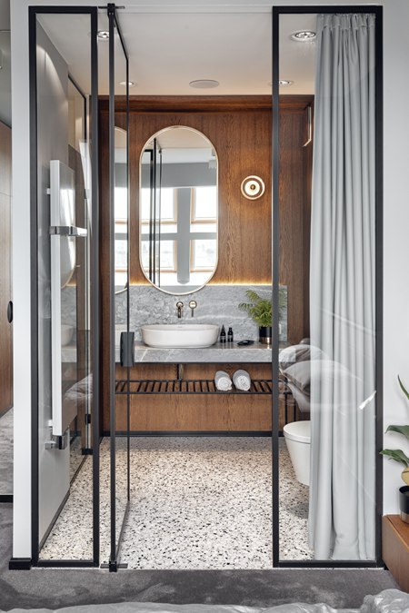 衛(wèi)浴間最好有窗戶,以利通風(fēng);如果沒有窗,尤其要注意門的細(xì)節(jié)。為防止衛(wèi)浴間的水向外溢,門界要稍高于衛(wèi)浴間內(nèi)側(cè);衛(wèi)浴間的門與地面的空隙要留得大一點(diǎn),以利于回風(fēng);如果是推拉門,還要在推拉門與衛(wèi)浴地磚之間做一層防水。