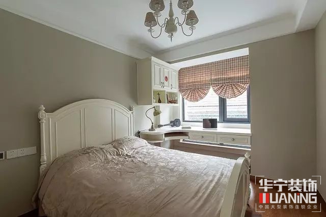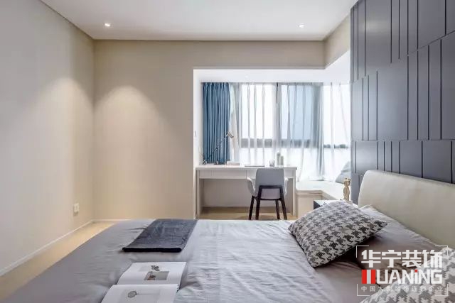 如果窗與床之間的距離足夠,直接擺上一張書桌,對(duì)于工作狂而言,簡(jiǎn)直就是完美。