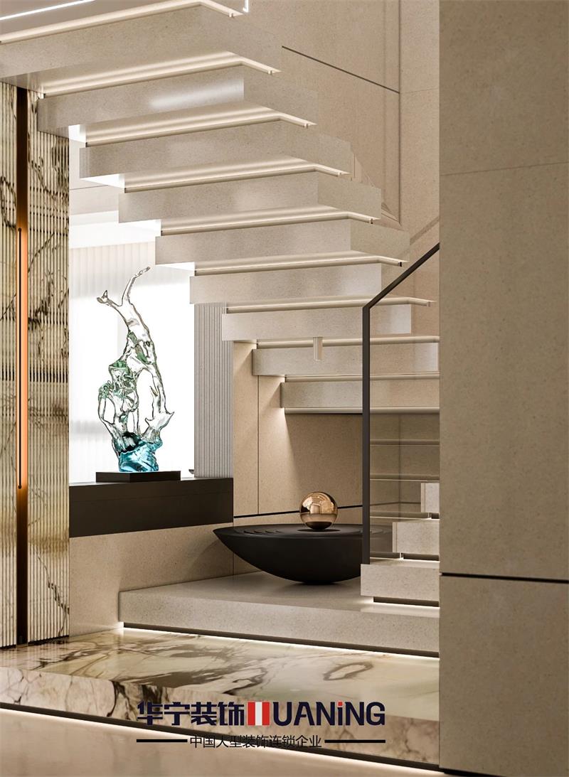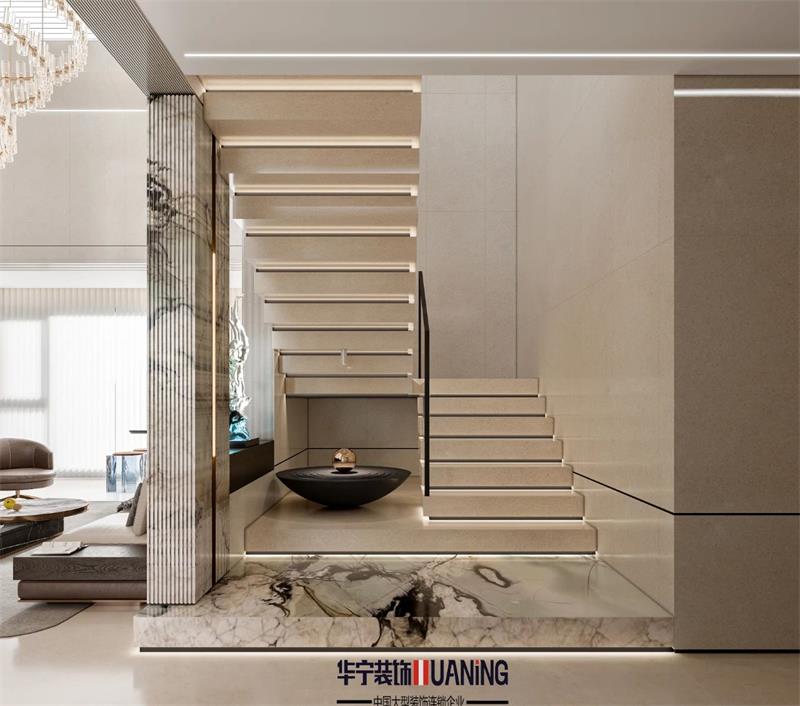 樓梯是空間中的一道藝術(shù)曲線裝置,將整體空間串連,空間仿佛擁有生命一般,就如同平靜海面突然掀起的浪花。