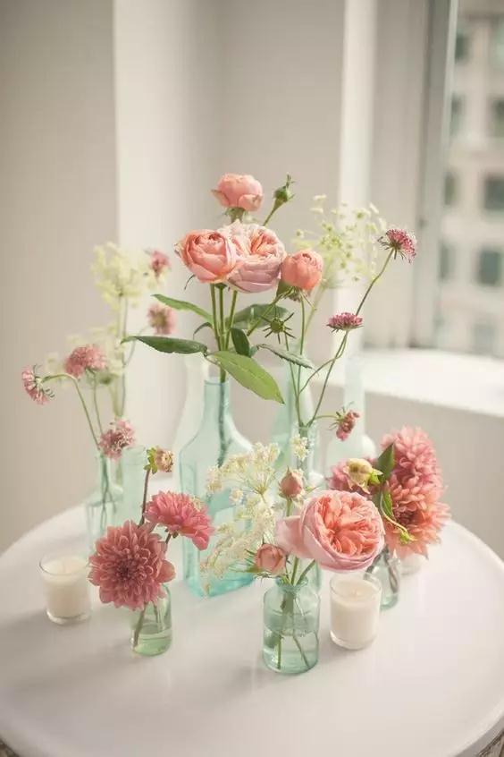 要是有一些廢舊的玻璃瓶,可以收著別扔,路過花店,買幾朵鮮花,放進玻璃瓶裝飾一下,整個房間都變美了。