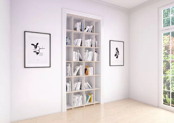 圖中這種嵌入墻面的書柜非常節(jié)省空間,簡單的設(shè)計(jì)很適合喜歡整齊劃一的畫面的你。