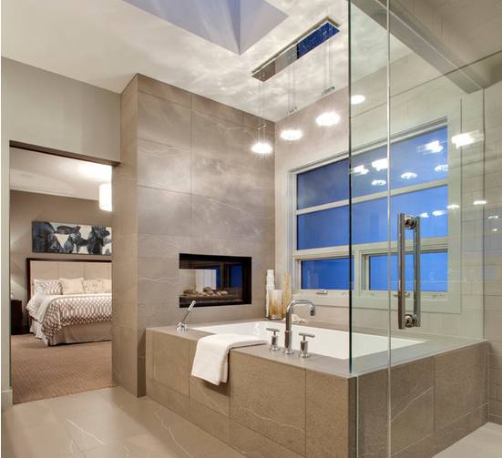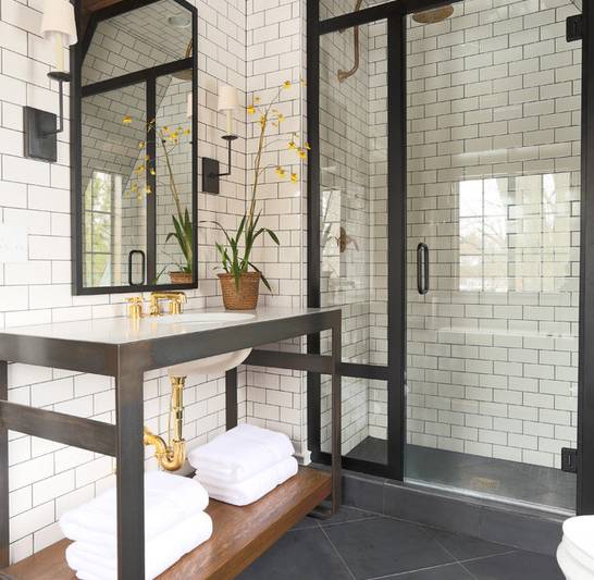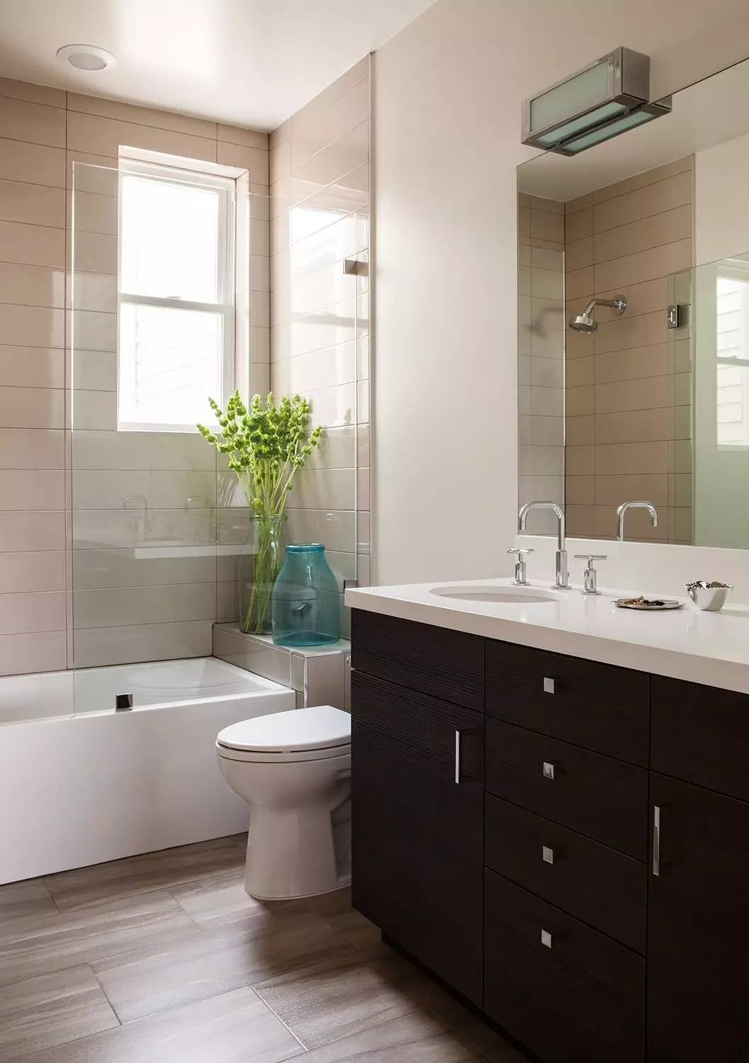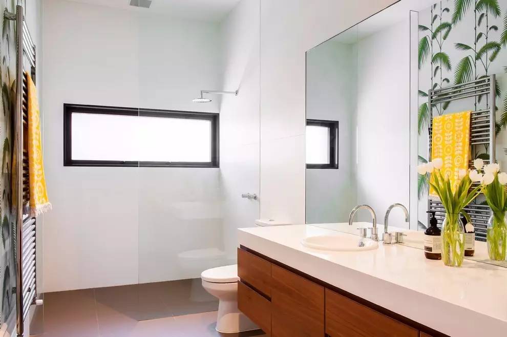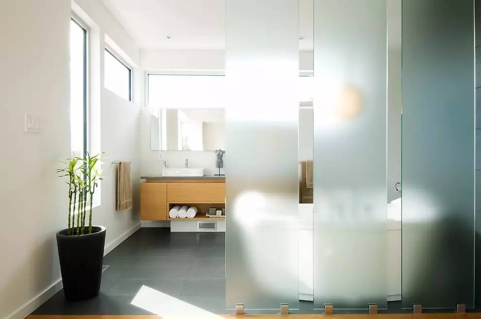 可采取開(kāi)放式的衛(wèi)浴,使用通透性強(qiáng)的玻璃與房間其他區(qū)域合二為一,也可以只打掉衛(wèi)浴間與臥室/客廳上半部分的墻體,打掉的部分以磨砂玻璃裝飾,解決采光不足的問(wèn)題。