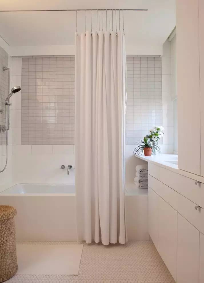 巧妙利用浴簾,浴簾一般由塑料或尼龍等材料制成,具有一定的防風(fēng)防水作用,還能有效保持洗浴區(qū)域的溫度。