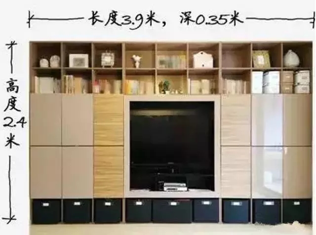 下面讓我們計(jì)算一下,電視柜的容量:3.9*2.4*0.35=3.3立方米。沒有直觀概念?20寸的登機(jī)箱是0.5*0.34*0.19=0.03立方米,算下來,這面電視柜可以收納100個(gè)20寸的登機(jī)箱能裝的東西!