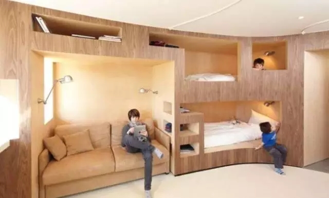二胎政策的實行,讓不少父母需要在有限的房間內將空間最大化利用!同時還要滿足安全性與美觀的追求。以下設計或許有您想要的答案。