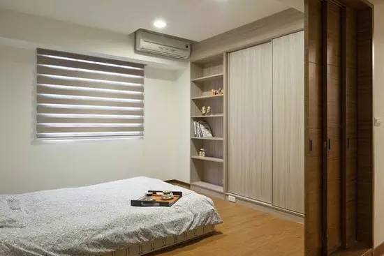 同樣是現(xiàn)代簡約的裝修風(fēng)格,在這個(gè)一居室的臥室中,裝修得精致小巧,而且很簡單。