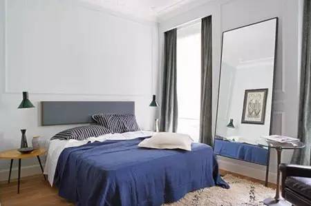 簡單普通的臥室空間里面通過鏡子的擺放能使空間得到更深的視覺延伸,從而增強(qiáng)空間感。