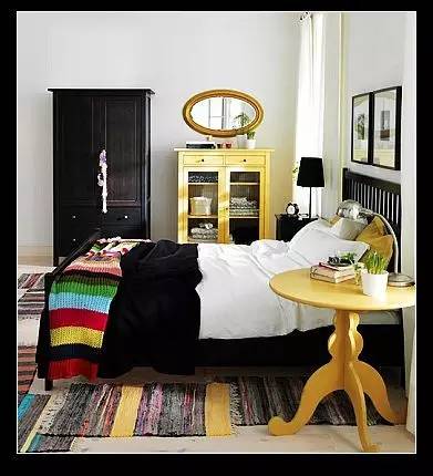 黑配黃的大膽搭配結(jié)合鄉(xiāng)村風(fēng)格的家具造型,整個(gè)房間都“潮”得不行。演繹臥室里的時(shí)尚復(fù)古潮流!
