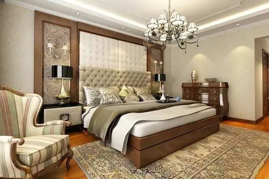 歐式臥室給人奢華的感覺,深褐色的被褥比較耐臟。床頭背景墻獨(dú)特的設(shè)計(jì),就給人一種時(shí)尚的感覺。二者的搭配更顯臥室的奢華魅力。
