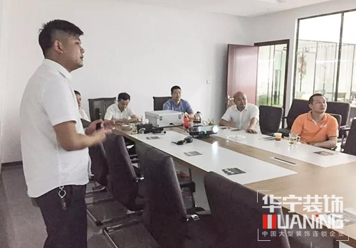▲廣東華寧裝飾集團(tuán)董事長劉霖聽取會議內(nèi)容