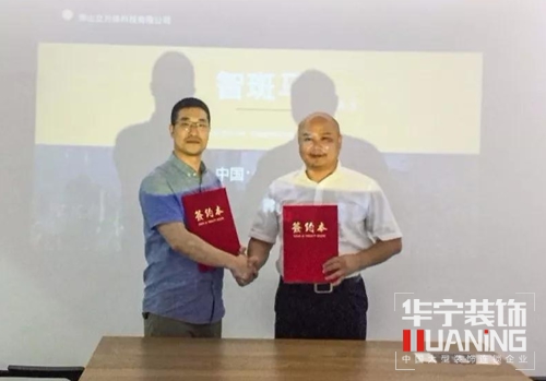 出席本次簽約合作儀式的有:廣東華寧裝飾集團(tuán)董事長劉霖、立方體科技董事長劉虎和科技總經(jīng)理肖輝。