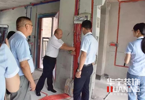 華寧裝飾集團(tuán)董事長劉霖親自帶隊(duì),到現(xiàn)場嚴(yán)格細(xì)抓工地的各個(gè)環(huán)節(jié),保障工程質(zhì)量。