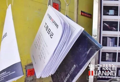 工地上各種標(biāo)示牌擺放整齊,上面詳細(xì)寫明施工管理流程、施工不能忽視的細(xì)節(jié)、工地形象的保護(hù)和企業(yè)文化的介紹,標(biāo)牌旁還掛著詳細(xì)記錄工地情況和進(jìn)度的工程日記,甚至還有監(jiān)理承諾書、安全提示牌和消防器材等。