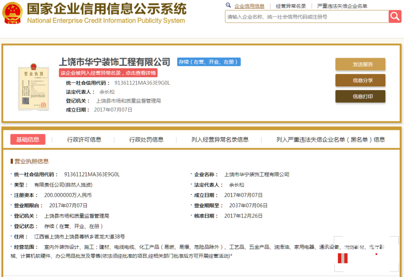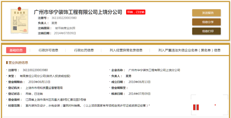 原“華寧裝飾集團(tuán)上饒分公司”已注銷