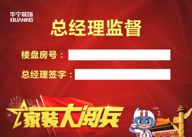 華寧裝飾集團設(shè)有客戶關(guān)系管理中心和質(zhì)量控制中心,為全國裝修客戶保駕護(hù)航。此次活動期間,簽單交訂的客戶可獲得由質(zhì)量控制中心授權(quán)分公司頒發(fā)的總經(jīng)理監(jiān)督牌一塊,由質(zhì)量控制中心及分公司總經(jīng)理共同監(jiān)督工地施工質(zhì)量,讓每位消費者在裝修過程中放心、省心。