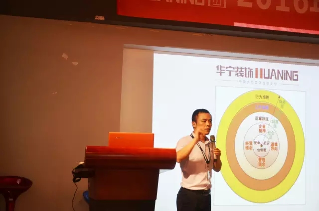 此后深情地講述了華寧集團(tuán)歷史沿革、華寧裝飾企業(yè)文化、華寧的組織架構(gòu)和華寧集團(tuán)的品牌。