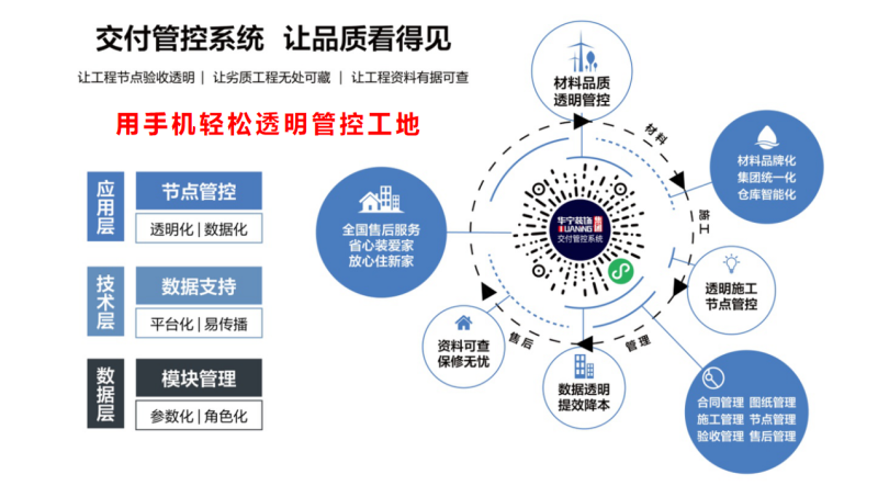 現(xiàn)在是一個(gè)萬(wàn)物互聯(lián)的世界所以我們希望通過(guò)交付管控系統(tǒng)讓客戶(hù)實(shí)時(shí)了解和掌握所有工程的施工標(biāo)準(zhǔn)、驗(yàn)收節(jié)點(diǎn)、服務(wù)過(guò)程