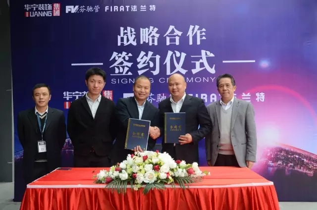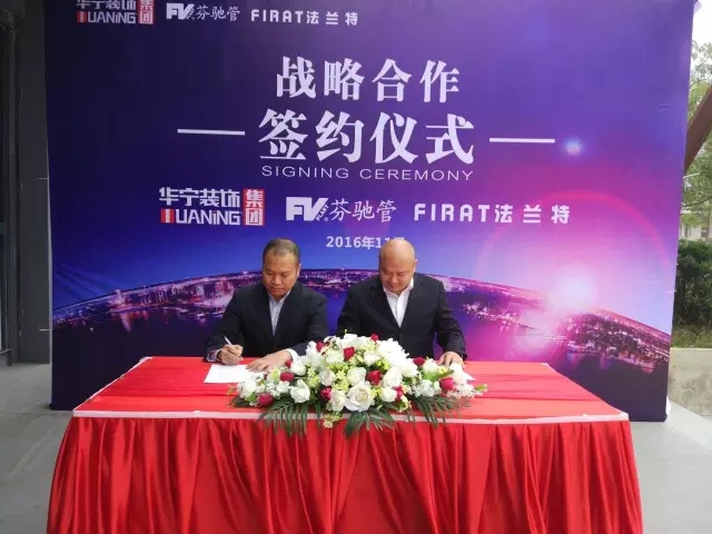 2016年11月29日上午,芬馳管/法蘭特中國區(qū)負(fù)責(zé)人代表朱總與華寧裝飾集團總經(jīng)理劉霖先生簽訂戰(zhàn)略合作協(xié)議。