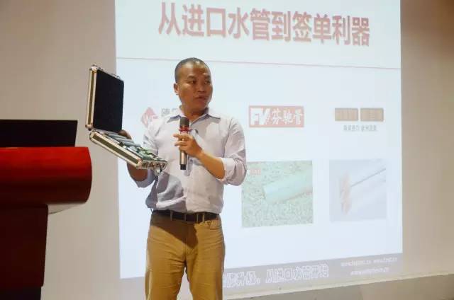 培訓(xùn)會(huì)上,芬馳管和法蘭特供應(yīng)商的專(zhuān)業(yè)人員分別講解了其水管產(chǎn)品的材料與工藝,重點(diǎn)解析其品牌優(yōu)勢(shì),并現(xiàn)場(chǎng)展示了水管產(chǎn)品的切面樣品,分享了如何將輔材的優(yōu)勢(shì)結(jié)合到裝修裝飾服務(wù)的營(yíng)銷(xiāo)當(dāng)中,提高簽單量。