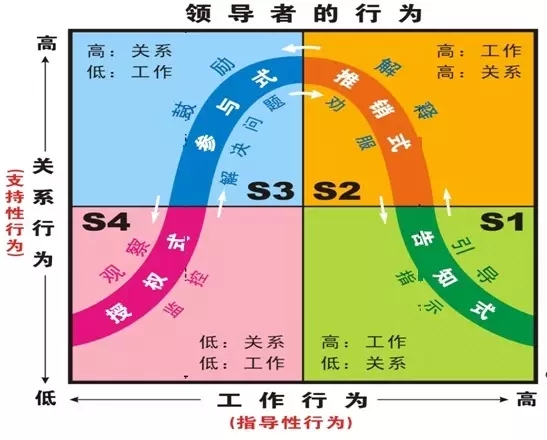4、授權(quán)式(S4):交由被領(lǐng)導(dǎo)者作決策并執(zhí)行。
