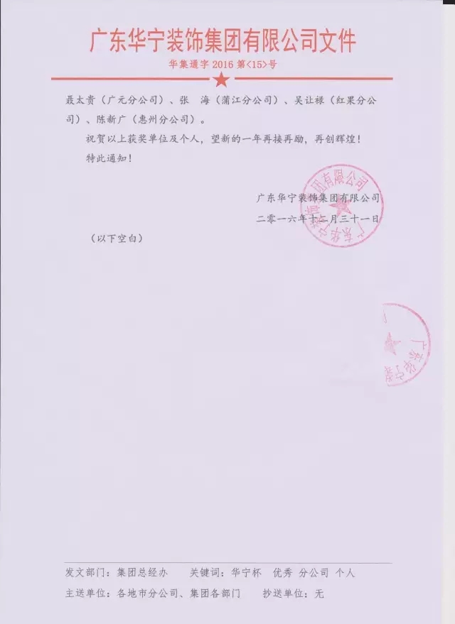 附華寧裝飾集團文件: