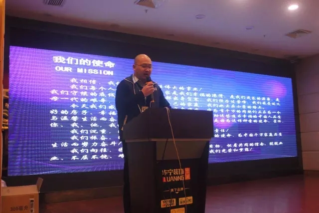 2017年工程·營銷培訓(xùn)會(huì)在觀看勵(lì)志短片中開始,我們深思,身為華寧人,應(yīng)該如何履行華寧使命——傳承中華裝飾文化,締造居家幸福生活。集團(tuán)總部企劃總監(jiān)羅秉鏵先生帶大家領(lǐng)略華寧的使命——為中國千萬家庭品質(zhì)生活而努力奮斗。