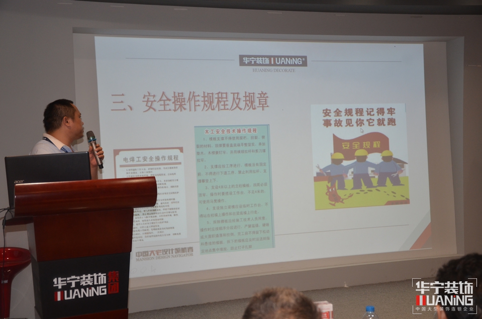 惠州華寧裝飾分公司執(zhí)行總部的發(fā)展戰(zhàn)略,秉承“真材實料造精品,讓工程承載企業(yè)的靈魂”的經(jīng)營理念,緊跟集團總部的發(fā)展步伐,對工程質量和安全生產(chǎn)嚴格管控。2016年6月6日晚,在華寧裝飾創(chuàng)意園里,召開了工程部安全生產(chǎn)大會。
