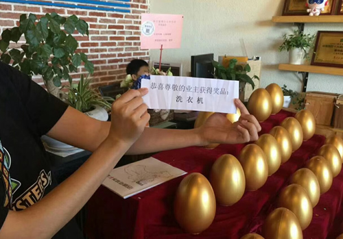 此外,在開(kāi)業(yè)慶典上,臺(tái)山分公司還精心準(zhǔn)備了“開(kāi)業(yè)砸金蛋”的惠民活動(dòng)。凡是參與此次開(kāi)業(yè)活動(dòng)并且在當(dāng)天進(jìn)店賀喜的來(lái)賓,均獲得砸金蛋的機(jī)會(huì),而其中好禮自然不會(huì)怠慢了熱情的客人們,洗衣機(jī)、冰箱等眾多精美家電被到場(chǎng)的嘉賓們抱走回家。而絕不落空的中獎(jiǎng)機(jī)會(huì)也讓當(dāng)天會(huì)場(chǎng)的氣氛始終火爆!