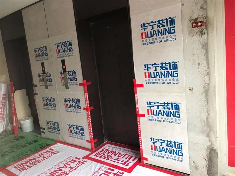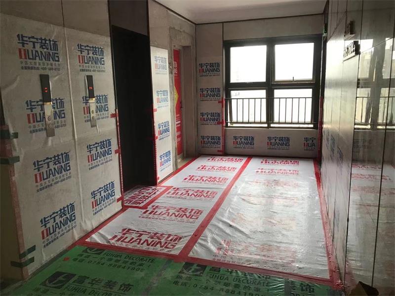 墻裙保護:需要保護的墻裙包括大門外的公共區(qū)域與大門內(nèi)的墻裙。墻裙保護可以防止運送材料和施工過程中對墻面造成剮蹭臟污等破壞,最大程度減少墻面污染。