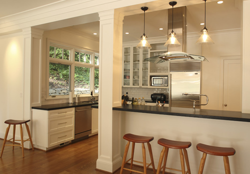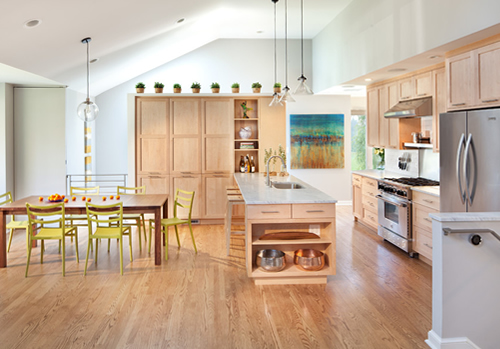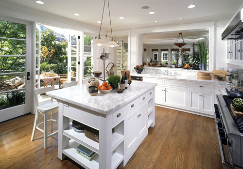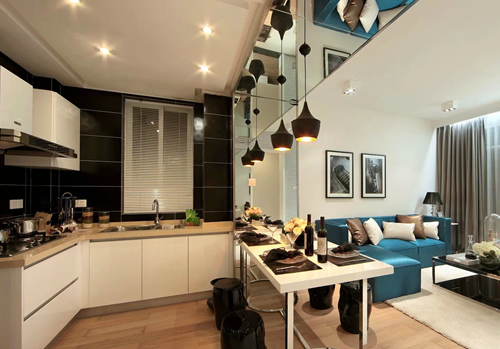 廚房新添的電器,就需要考慮留出空間來,如果廚房能在不影響整個居室空間的前提下敞開,可以考慮在拆掉的墻面處拓寬操作臺,否則就只能在櫥柜里預(yù)留空間。