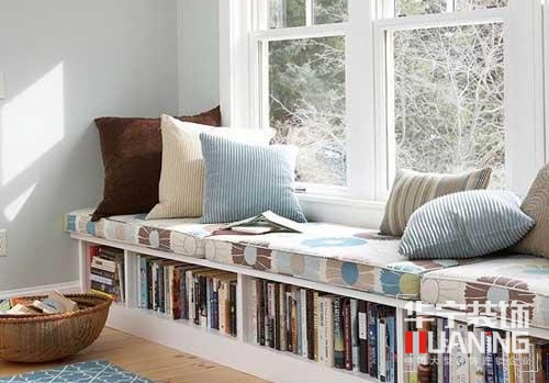 飄窗作為一個(gè)不大的空間,整潔是最重要的。所以設(shè)計(jì)一個(gè)可以放置書籍和小雜物的收納角,不僅可以給飄窗增加文藝氣息,也保證了它的整潔性。