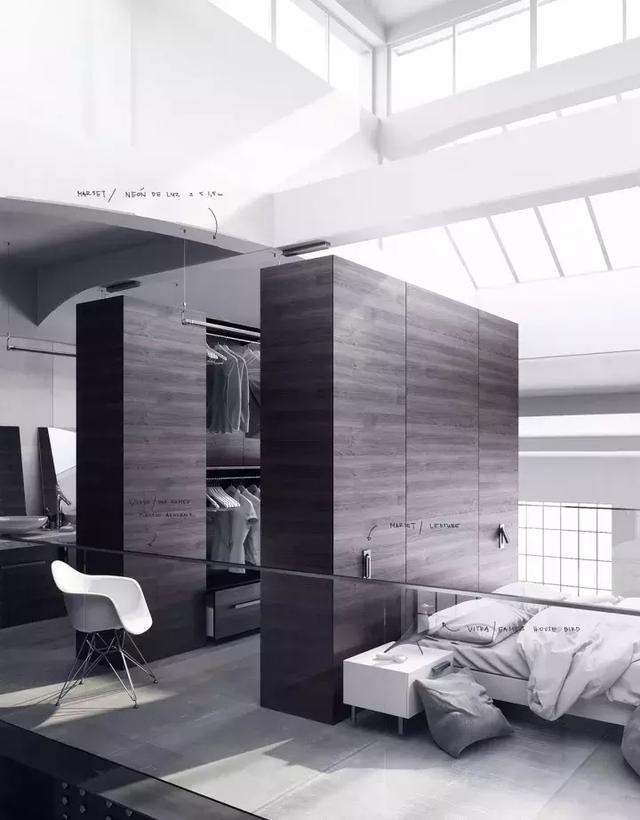 由外到內(nèi)地按照主臥床、衣帽間、衛(wèi)生間進(jìn)行一體化布置,空間的開(kāi)放感并沒(méi)有得到改變,布置方式也非常簡(jiǎn)單。