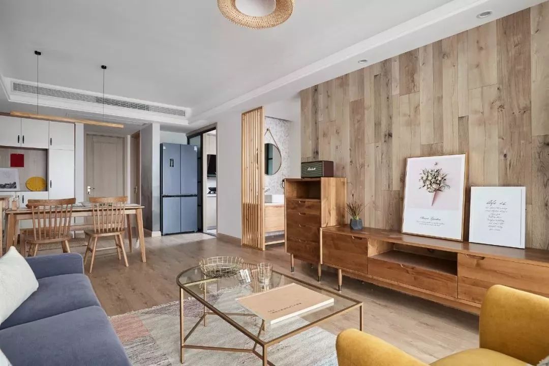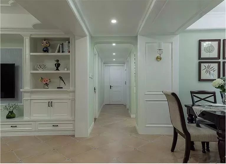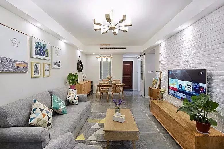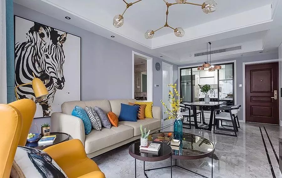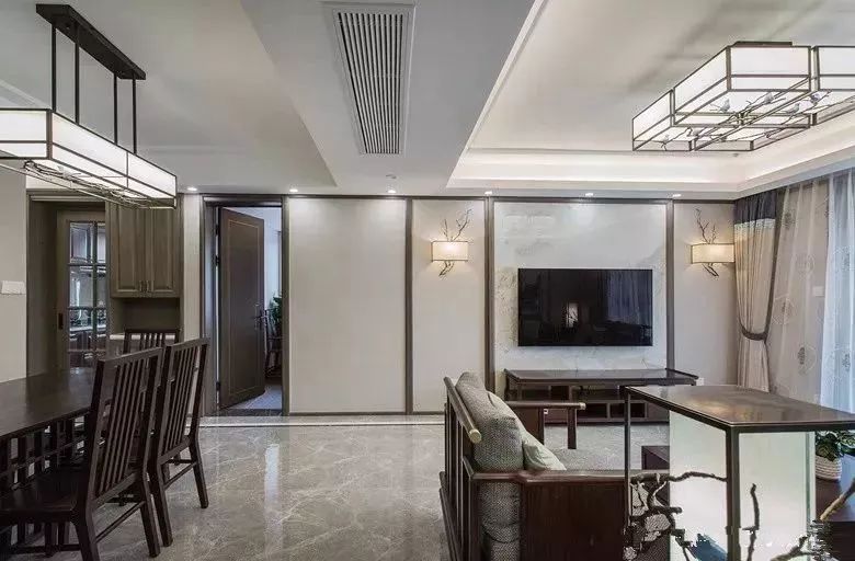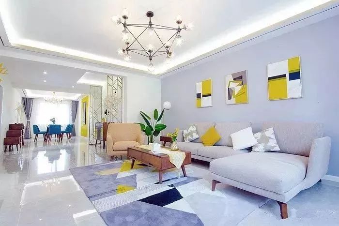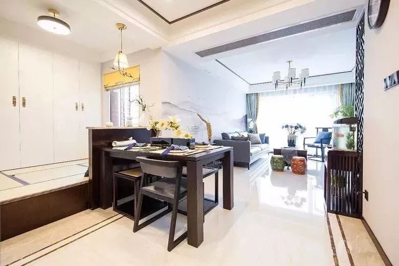 如果在吊頂造型方便不方便做區(qū)分的話,也可以通過在墻面的造型、用材、顏色等方面去做區(qū)別,讓客餐廳空間相互打通又保持獨立感。